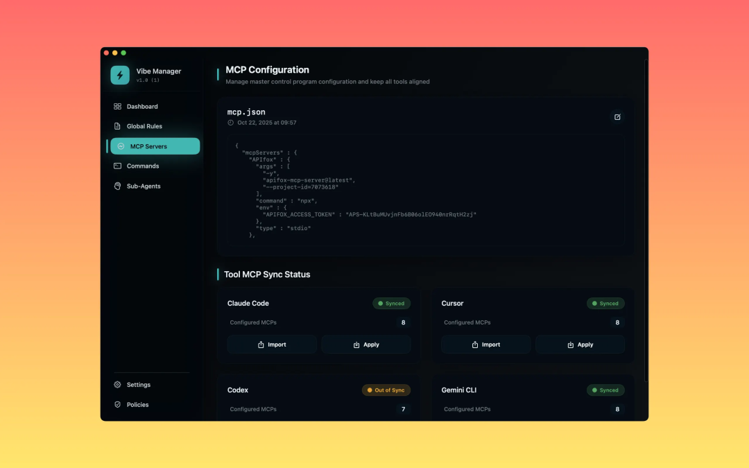 把最痛的点做成最小可用:一键把 MCP 与开发规则同步到多家 AI 编程工具(cursor、Claude code、gemini cli、codex cli)