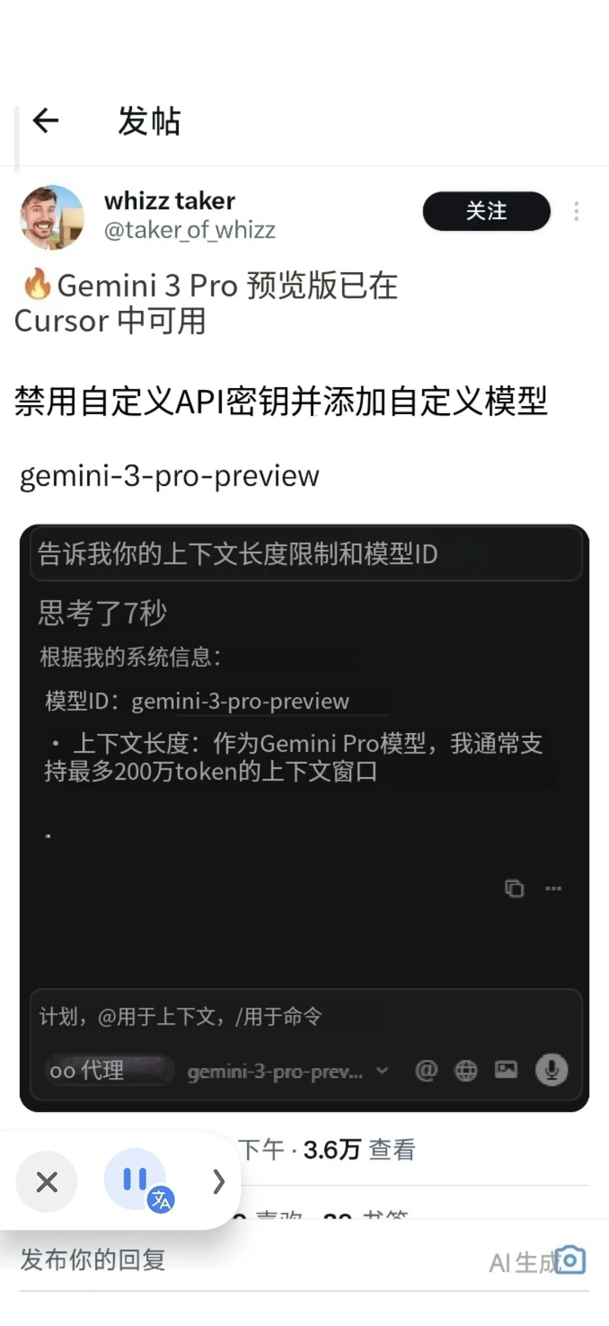 据说已经能在 Cursor 里直接使用了,自定义模型时添加 gemini-3-pro-preview 即可。